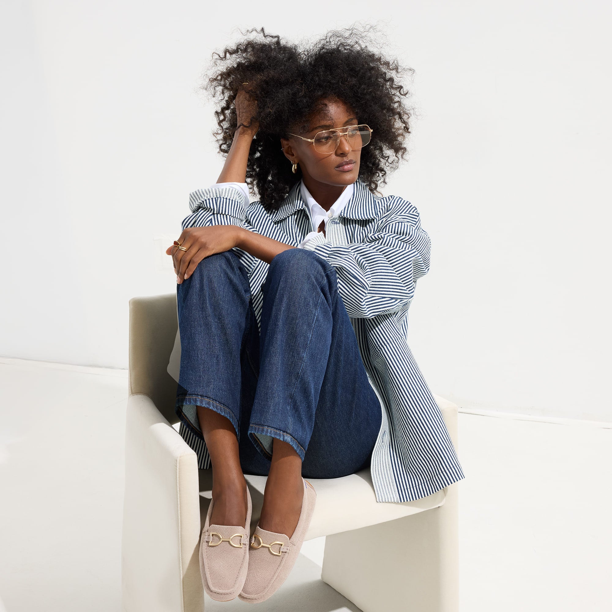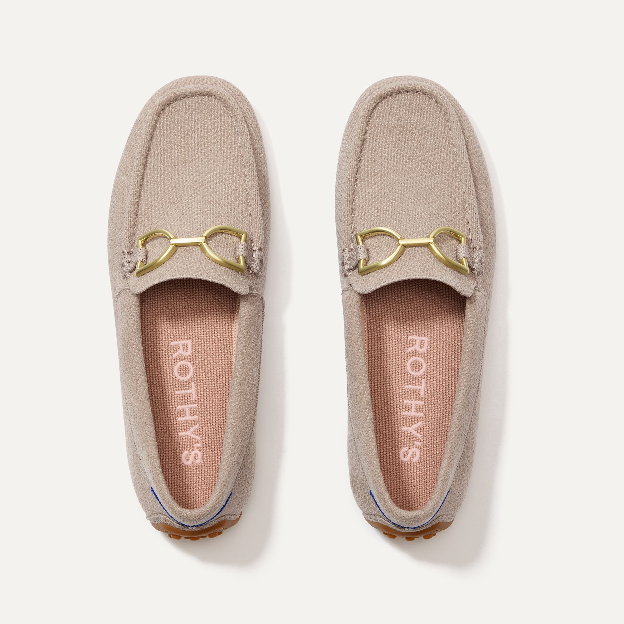 • Soft. flexible upper in cool taupe with a gold hardware signet bit on the vamp.